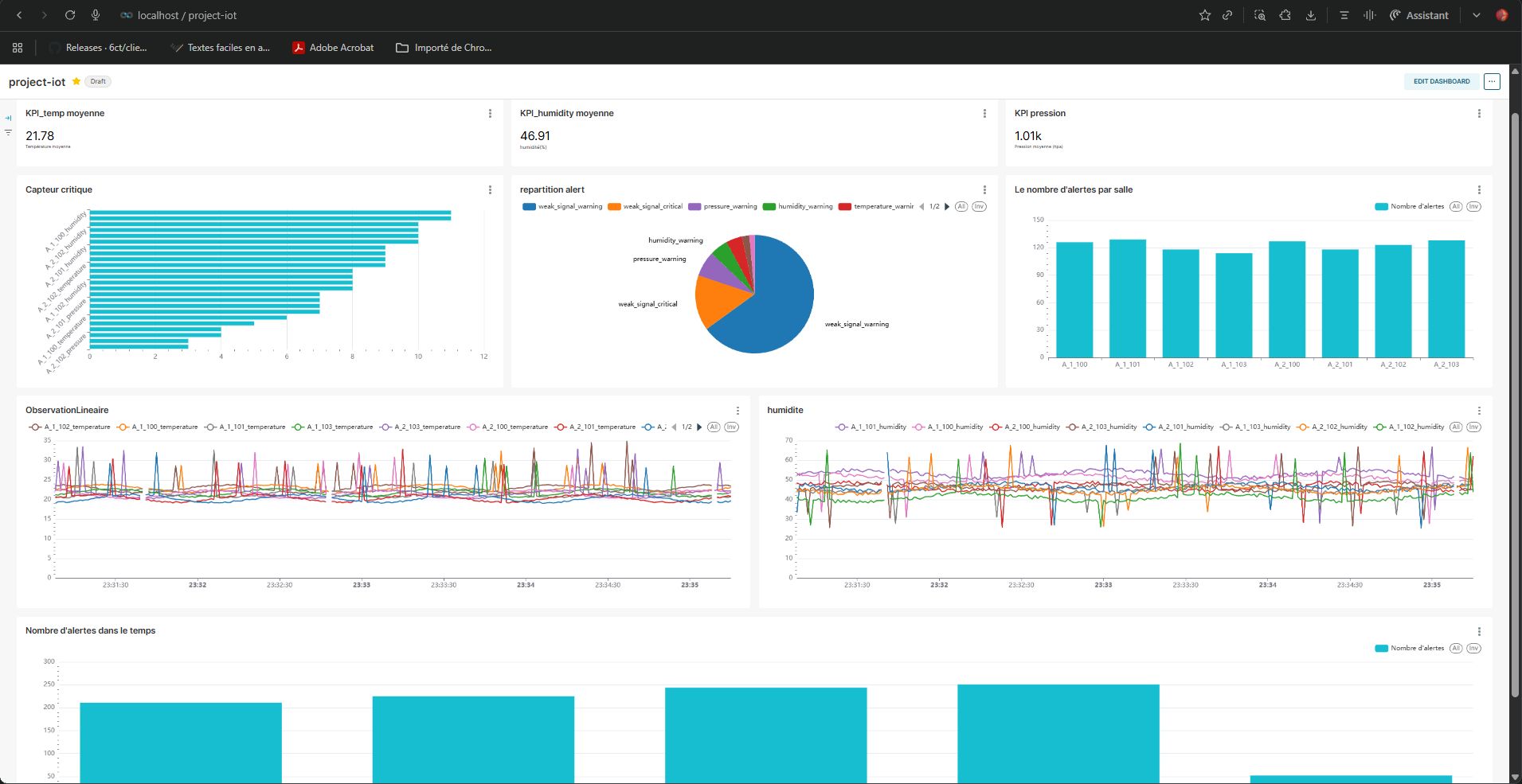 Pipeline ETL temps réel pour des flux de capteurs IoT (température, état des capteurs) avec Kafka et services dockerisés, détection d’anomalies et tableaux de bord dans Superset.